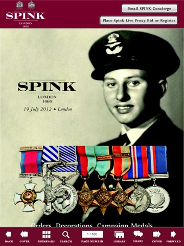 The Spink App will allow you to view current auction catalogues on the move, once downloaded you can browse the catalogue offline, search lots, view images, and share auctions with your friends using email, Twitter and Facebook.