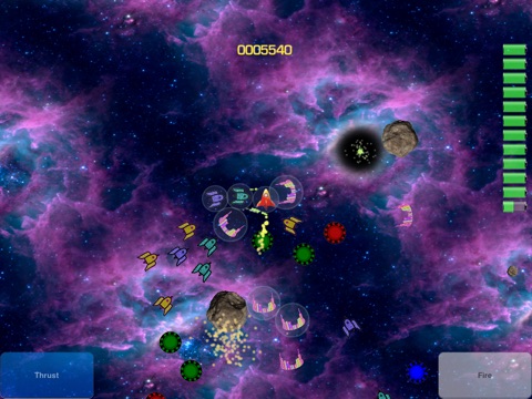 Spinvaders thrusts you into an endless space battle against a range of deadly and ceaselessly persistent robotic spinning droid ships.