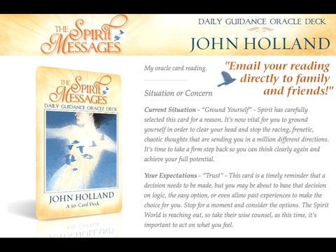 Gain support, comfort and divine guidance from your loved ones, family, ancestors, friends, guides and helpers in the spirit world with The Spirit Messages Daily Guidance Oracle by renowned Psychic Medium John Holland. The cards in this app will enable you to develop a higher awareness of the Universe and remind you that you are never truly alone.