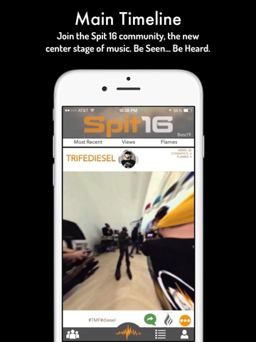 The Spit16 app puts the music and the artist first. There are no built-in beats, no virtual aids to teach you how to rap or sing and no fake studio equipment. There’s no getting cut off mid-verse, you don’t have to settle for a few seconds of airtime, and no more getting lost in an ocean of endless unrelated posts or clips.