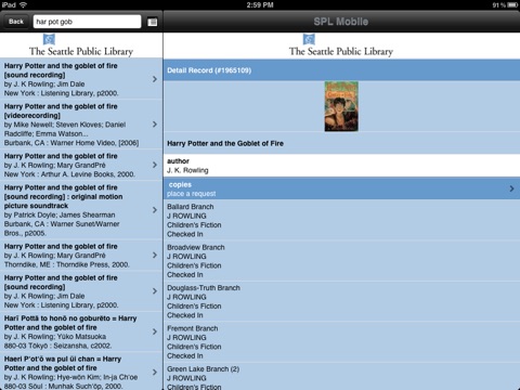 The mobile catalog offers a great new way to find items - just type the first couple of letters of words. Type row gob for J.K. Rowlings "Harry Potter and the Goblet of Fire." For "Gossip Girl" titles, type gos gi. To find a specific "Gossip Girl" title like "Because Im Worth It," you only have to type gos gi be.