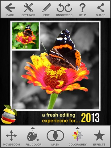 Use your finger as a brush to "paint" sections of your image black and white, or to bring back the original color.