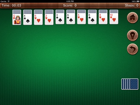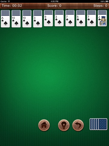 With time flying, only the classical things never fade. Accompanied with Windows classical spider solitaire card game, we spent much more leisure time. Now, without computer, we also can play this classical game on our iPhone, iPod Touch or iPad. Enjoy ourselves with different challenges.