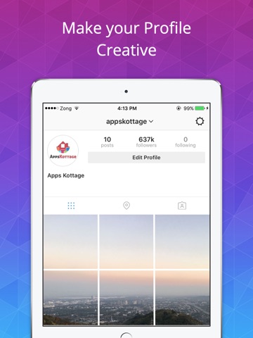 SPLIT PHOTOS introduces a new way to using Instagram.By using Grid Style for Instagram app,you can create a beautiful Instagram Profile page.You can Make three layout according to your choice.