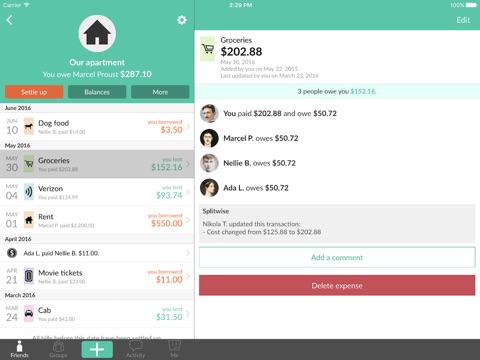 Très bonne appli. Un peu moins simple que billmonk, mais quand meme tres bien. Une version iPad serait, et une integration en francais un peu plus pousee et ce serait parfait. Ce serait biende voir le dashboard aussi dans lappli iOS