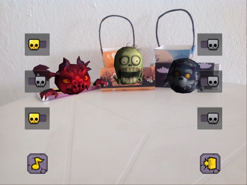 5. Mix the sounds by pressing the buttons and tap on the Skull or Zombie to hear their evil wishes and creepy laughters.