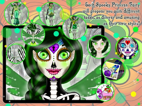 Welcome to an Enchanted Planet inhabited by Magical Princess Fairies. This world is shrouded in mystery and darkness. Are you brave enough to immerse yourself into this spooky world and reveal its secrets together with four beautiful and eerie characters: Catrina, Tenar, Bastet and Irina. Fairies of the darkness will propose you a great time of amusement with cool and spooky activities and tasks, as different as their own style and origin! Become a Spooky Princess Fairy. Are you ready for that?