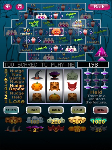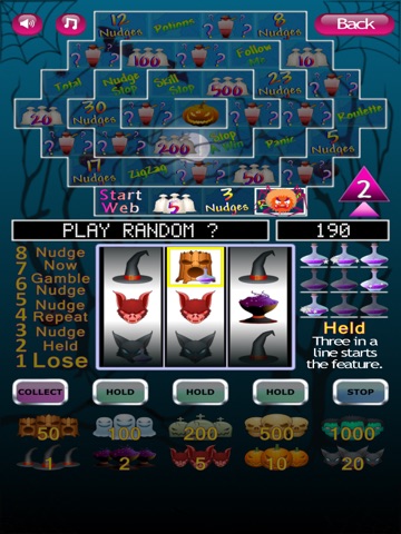 Reach the pumpkin in the center of the web to get the jackpot with a repeat change.