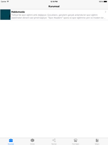 Spor Akademi firmasının kurumsal, ürünler, takımlar, foto galeri, iletişim ve diğer bilgilerinin yer aldığı mobil uygulamasıdır.