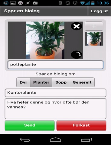 En app til Spør en Biolog forumet (http://bio.no/enbiolog/ ) som gjør det enkelt å ta bilder med mobil og sende spørsmålet direkte til forumet. For å ta i bruk appen må du ha en eksisterende bruker på forumet. Gå til http://bio.no/enbiolog/register.asp for å registrere deg.