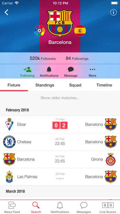 - Personal News Feed : Follow teams, players, newspapers or even your friends and get all their news and updates delivered right into your very own news feed that we tailor specially for you.