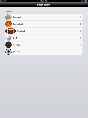 Our application will show you the terminology and what they mean. Select a sport and then select the term and you have it right in front of you.
