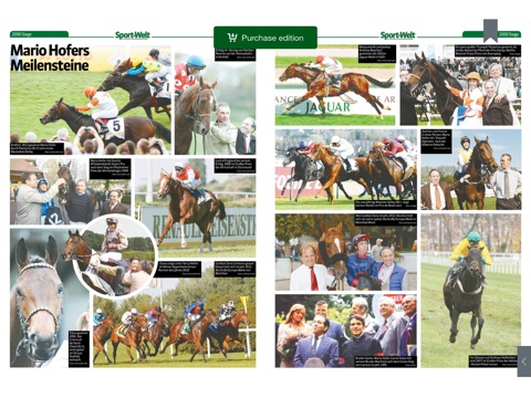 Die Sport-Welt in digitaler Form, jetzt für das iphone und das ipad. Die seit über 125 Jahren erscheinende Sport-Welt ist die älteste Sportzeitung Deutschlands und berichtet 150 Mal im Jahr über das nationale und internationale Turf-Geschehen. Die Sport-Welt ist damit der unverzichtbare Begleiter für alle Freunde des Galopprennsports und den Pferdewetter. Berichte rund um alle deutschen Renntage und die internationalen Highlights, Interviews, Zuchtthemen, Kommentare und Kolumnen, Statistiken und vielfältige Wettinformationen und Wett-Tipps zeichnen die Sport-Welt aus. Für alle deutschen Renntage gibt es ein herausnehmbares Rennprogramm mit Starterfeldern, Rennfarben, Formen und Tipps.