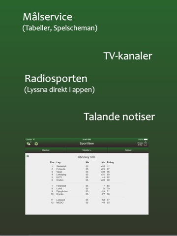 • Matchspecifika radiosändningar från SR när det är tillgängligt.