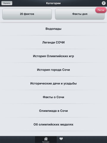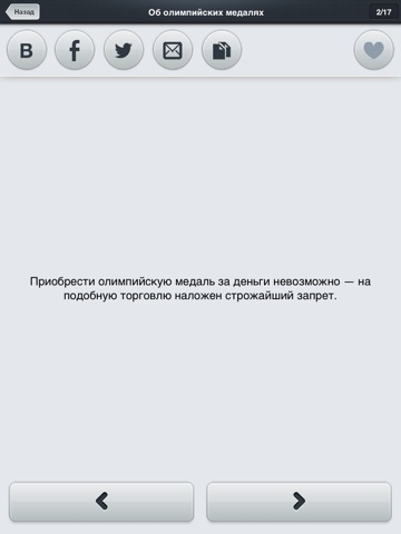 - возможность поделиться фактами через ВКонтакте, Facebook, Twitter;