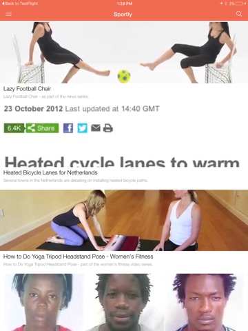 Sportly features premium curated Sports, Entertainment and News content from a variety of trusted partners. Download and view great videos ranging from Tennis, Football, Soccer, Yoga and more.