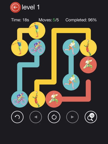 Connect two circle with the same sport with pipe to create a flow. Connect all pair to solve each puzzle. But watch out, pipes will break if they cross or overlap!