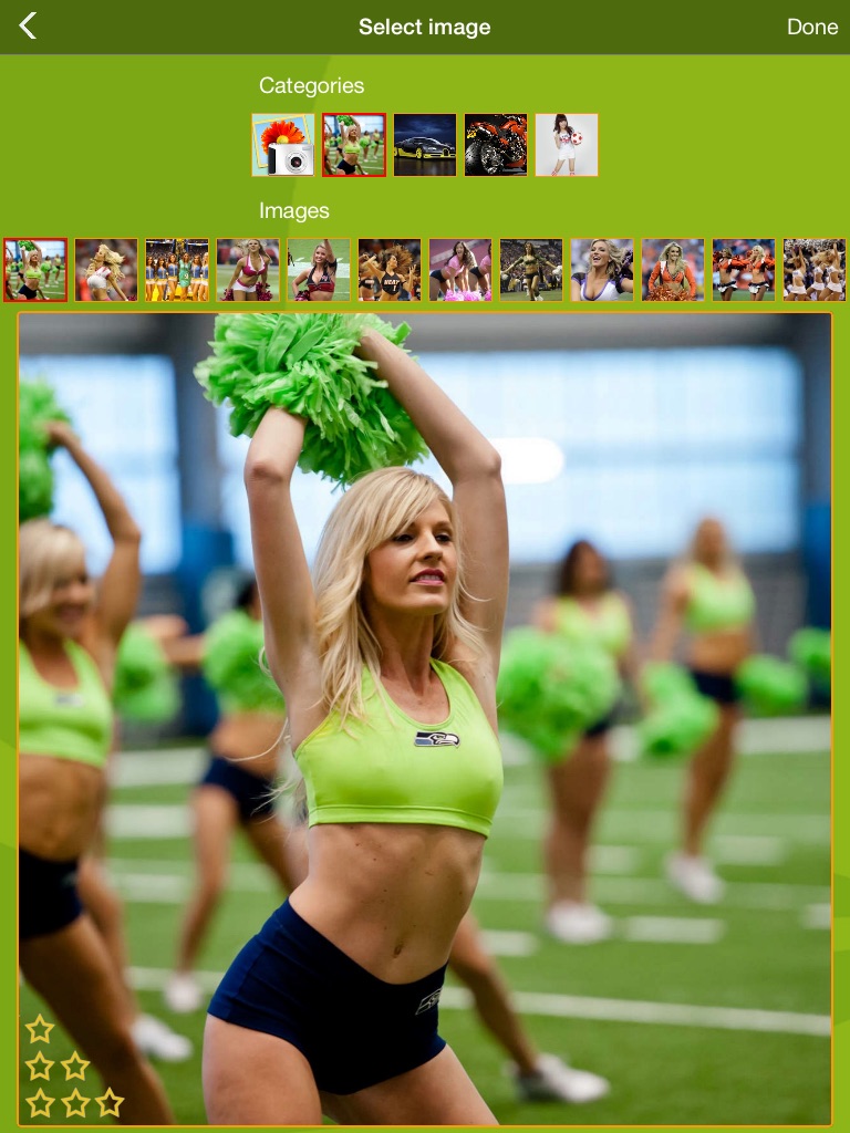 Although you can play slide puzzles with various type of images: Cute cheer girls, cool football girl and awesome sport cars, motorcycles… Try to own them all.