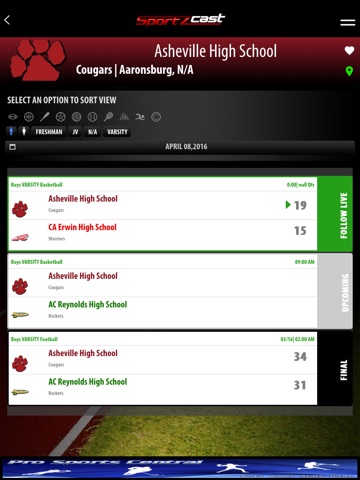 The Sportzcast app is your new home for LIVE official high school sports scores! Follow along every detail of the scoreboard the second it happens with Sportzcast’s unique technology.