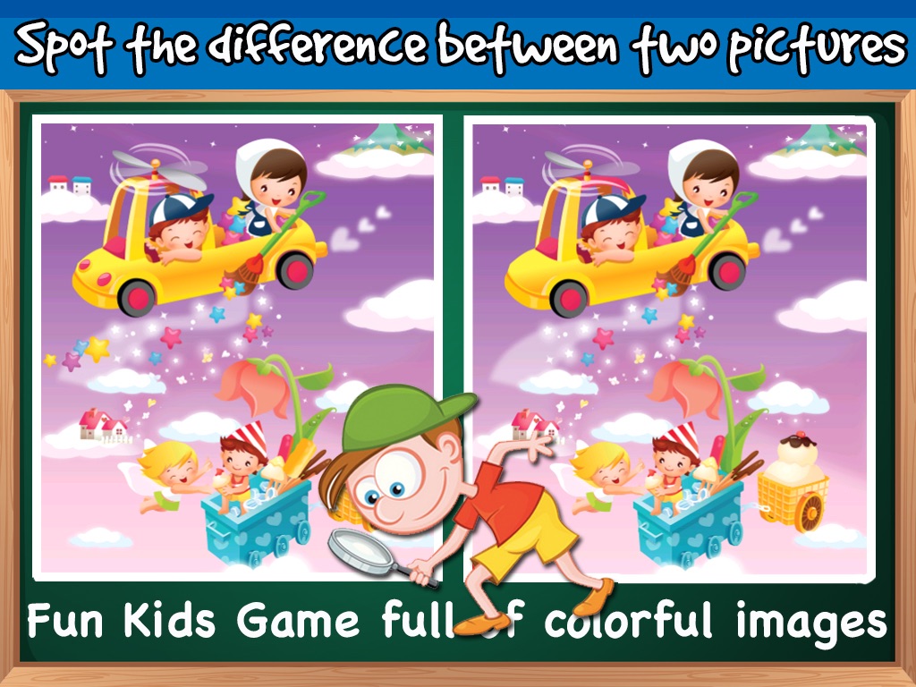 Spot the Difference puzzles games for kids and young teens. Kids games & activities that will entertain kids all day long.. A light-hearted and straight-forward spot-a-difference game for Preschool Kids. In this funny Spot game, see if you can spot the differences in all of these pictures?