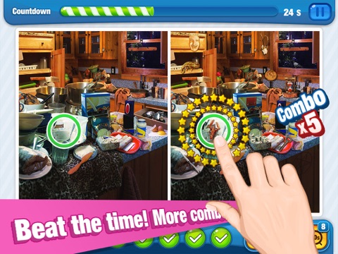 There are three different puzzle challenge themes to play in Spot Differences: Crazy Kitchen: time attack, zen and standard time mode. Each one gives you a new challenge to complete using two pictures from the kitchen. Puff your kids brains up and solve the themed puzzles before the timer ticks to zero!