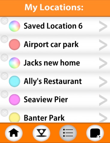 Later, when you start the app again you can click an icon to access the application’s features such as naming and saving your locations, categorizing them or deleting them.