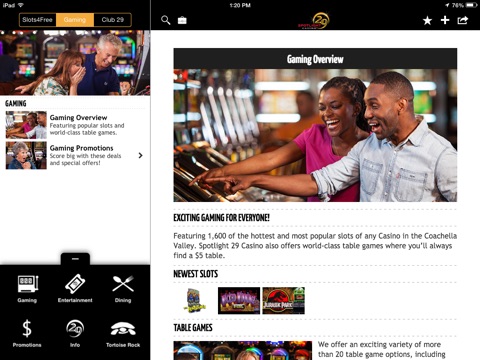 Spotlight 29 Casino has the hottest and most popular slots of any casino in the Coachella Valley! Download our official mobile app today for information on our world class table games, luxurious dining options, premier entertainment, and our Slots4Free Casino allowing you to experience all the fun and excitement of a world-class casino from the comfort of your own home. Nothing beats Spotlight 29 Casino...the Valley’s best bet!
