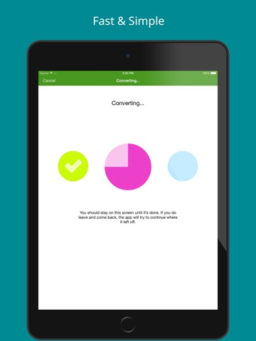 Conversion is done on a secure cloud server, which makes conversion easier, faster and much more battery-friendly. You must have an internet connection to use this app. Files are immediately deleted from the server after conversion. While the files are immediately deleted after conversion or cancellation, you should be aware that by using this app, you agree that your files will be sent over to internet from the app to the conversion server.