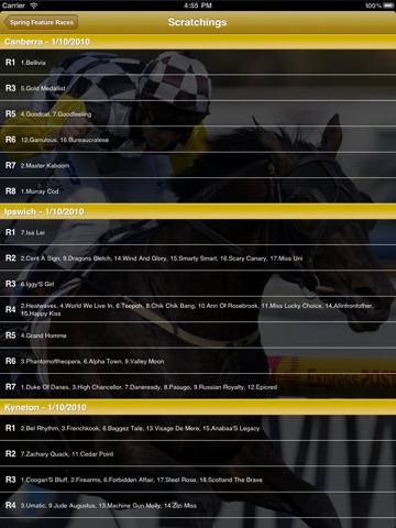 As well the Race Form section of the App will keep you up to date with racing in other States and countries during the Spring.