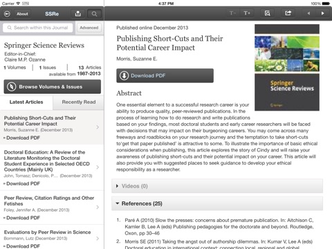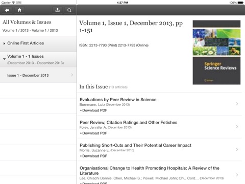 Tap into the most recent literature reviews by outstanding PhD students and early career researchers in life, biomedical and related sciences with the Springer Science Reviews app. Springer Science Reviews is a journal published by Springer Science+Business Media that reviews the latest studies in life, biomedical, and related sciences. The Journal actively promotes cross-fertilization and trans-boundary thinking, publishing the biological and directly related social and physical sciences side-by-side. The journal includes invited expert reviews relevant to both early career as well as established researchers.