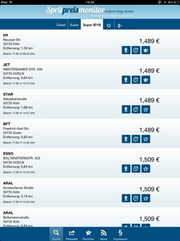 Hab bis jetzt immer die Internetseite spritpreismonitor.de benutzt und hab festgestellt, hier sind die Daten zu Tankstellen am genausten. Leider funktioniert bei mir das Speichern der bevorzugten Tankstelle nicht. Daher 4 Sterne. Besitze das iPhone 4S mit aktuellem IOS