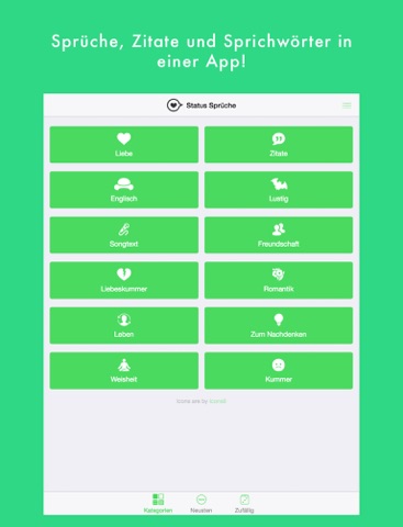 Du bist auf der Suche nach einem neuen Status Spruch für Instagram oder WhatsApp und willst schnell, einfach und kostenlos neue Sprüche und Zitate finden? Dann ist die Sprüche, Zitate & Sprichwörter App genau das richtige für dich!