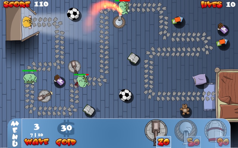 Stop the deceivingly cute Squabies before they reach your bed in this classic TD game. Place three different weapons strategically in the right spots along the monsters path to your bed. Earn gold for each stopped Squaby stepping out of your closet to build new towers and upgrade existing ones. Squaby is an easy to play TD game and usable by everyone.