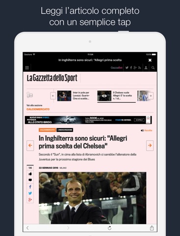 I marchi dei giornali presentati allinterno dellapp sono di proprietà dei rispettivi titolari e sono utilizzati solo a fini descrittivi e identificativi delle notizie. Nessun rapporto commerciale sussiste con i giornali e le squadre menzionate nellapp.