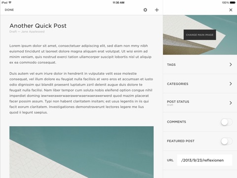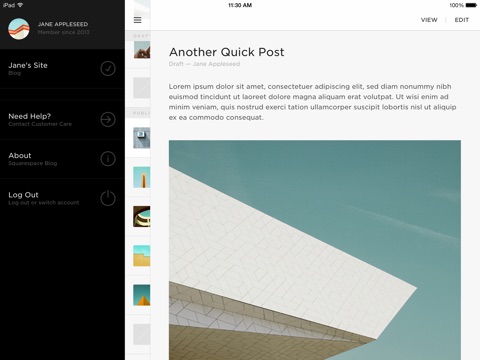 The beauty and power of Squarespace in your hand. Designed for iPhone and iPad, Squarespace Blog gives you the tools you need to write and edit posts and manage comments on multiple Squarespace websites.