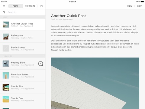 With Squarespace Blog you can quickly toggle between your blogs and websites to manage content and comments.