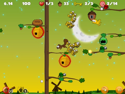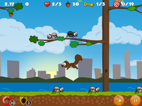 Buster the Squirrel was robbed of his prized Giant Acorns by the forest critters. Help Buster steal back his prized acorns in this tree jumping wacky action packed adventure! Using your arsenal of nutty weapons you will fight against an army of Birds, Spiders, and Bees who are hoarding the nuts! In the Squirrel Game you will face the challenges of strategic jumps, dodging and shooting enemies on your way to unlocking your Giant Acorns.