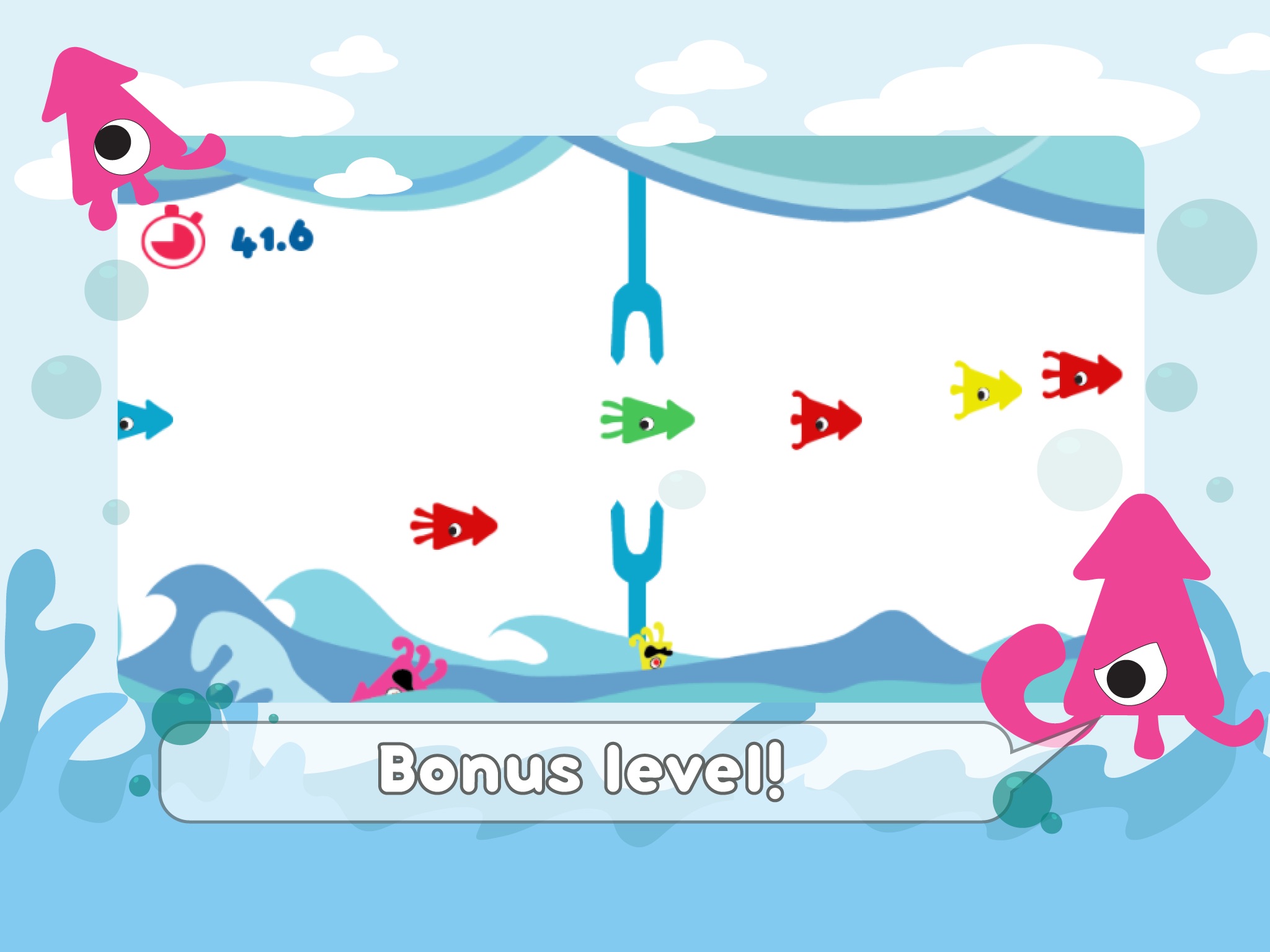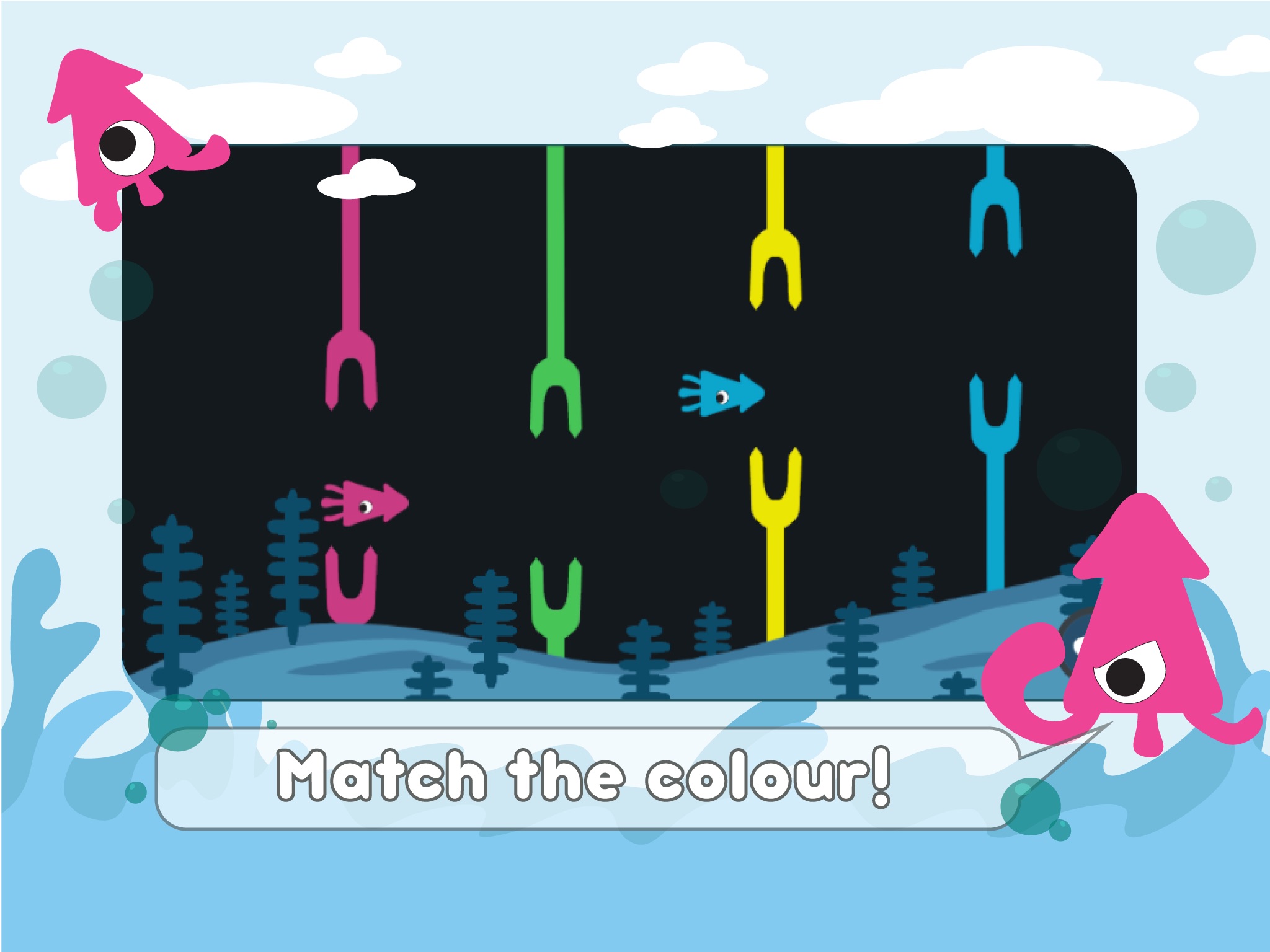 Those pesky squids are swimming away and it’s up to you to stop them. An arcade game where you switch the colors of the fork to match the squid and tap to squish as many as you can. The squids are endless, with more and more coming in wave after wave. This is a game where speed don’t matter, only precision and concentration.