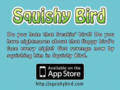 Do you hate that freakin bird? Do you have nightmares about that flappy birds face every night? Get revenge NOW by squishing him in Squishy Bird.