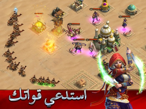 Clash of Desert is now available in Arabic, Turkish and English. Join Arab players from all over the world in this epic PVP real time strategy game. Clash of Desert welcomes you to the ruthless world of Arabian Desert, where you can fight the barbarians, destroy their castles and join alliances. Build your town, gather your resources and strategically plan your defense using Hero Totem, Magic Towers and City Walls. Raise Janissary or Drake troops, hire heroes such as Conqueror or Eagle Eye to assure your victory! Crash all enemies and become the greatest leader of the Desert!