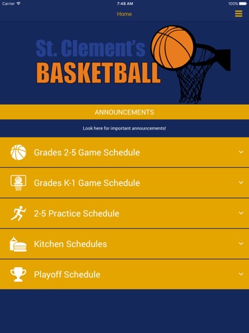 With the St. Clements Basketball Mobile App you can have easy access to Game, Practice, and Kitchen Schedule.