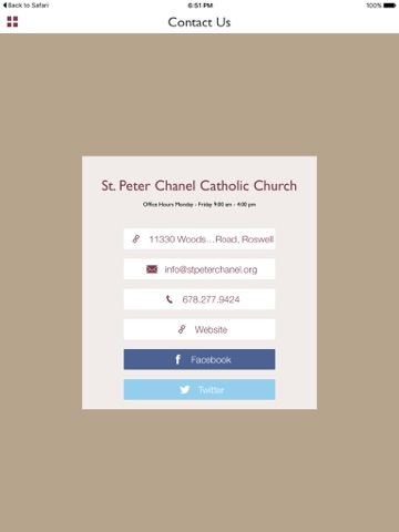 Our app will help you stay connected with everything here at St. Peter Chanel Catholic Church in Roswell, Georgia. You will find direct access to parish news, calendar, and our Mass times. For those that are new, or have been away for a while, we have information to help you learn about the Catholic faith. We also have many resources to help you pray, including Daily Readings in text and audio form, along with some very useful links.
