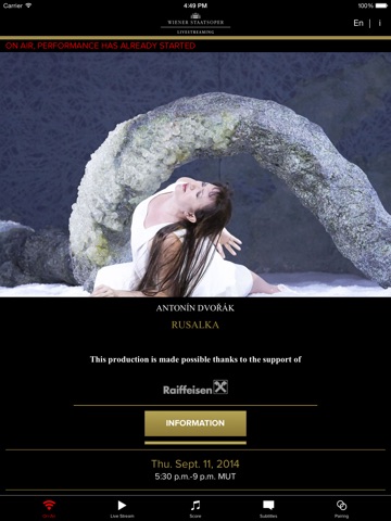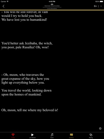 Enjoy livestreams from Vienna State Opera (www.staatsoperlive.com) on your computer, connected TV or on your Samsung Smart TV using the Wiener Staatsoper 2nd Screen App to display multilingual subtitles, moving scores and other synchronized content on your mobile devices.