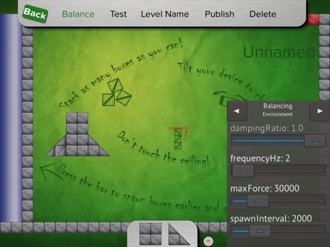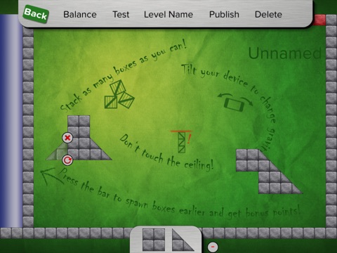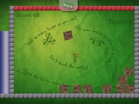 * Stack boxes by clever dragging them around and with tilting your device.