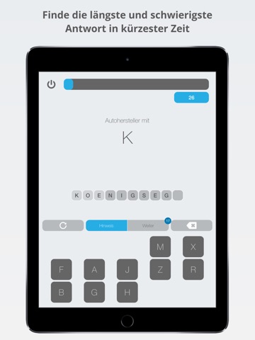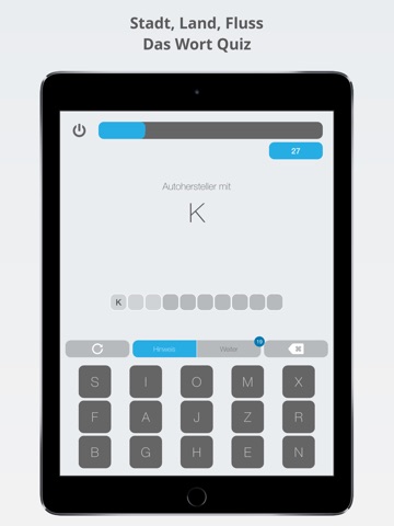 Das klassische Kinder- und Familienspiel Stadt, Land, Fluss in einer modernen Quiz Version. Du hast 100 Sekunden und musst soviele Wörter wie möglich finden.