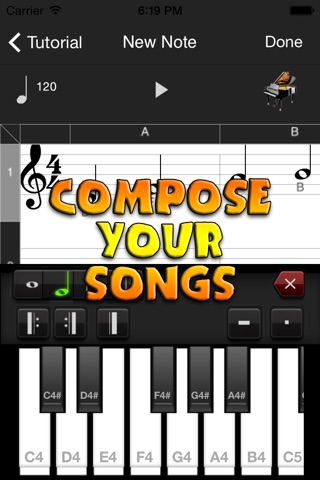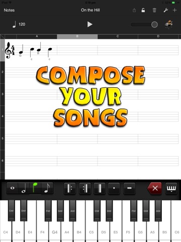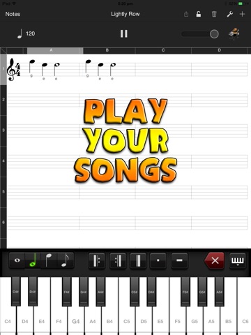 Sheet music can be created and played using STAFF NOTES.