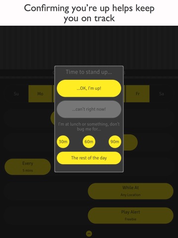 We dont micromanage you, and we dont make you feel guilty. Theres no compulsive tracking and time management, and we dont tell you what exercises you need to do. Just regular, simple reminders to get up, with easy confirmations so you can get a sense of how youre doing.