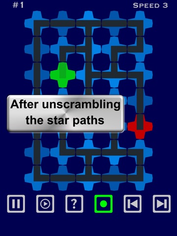 Line up the stars to unscramble the course path and then roll a ball through the cosmos from beginning to end. Star Course is a two-part game. You unscramble the maze by tapping the stars to rotate them until the connection from the green star to the red star is restored. When the maze is unscrambled, tap the launch button to put the ball into motion. Tilt your iOS device to navigate from the green star to the red star. Your score will be the percentage of stars you collect along the path compared to the maximum possible path. You can repeat the puzzle if you want to improve your score or you can go onto the next puzzle. If you use game center, you can see your leaderboard scores and achievements. If a particular puzzle proves difficult, use the help (?) button to solve the star alignment or show the longest path. This help will lower the score, but you can always return and play that puzzle again later.
