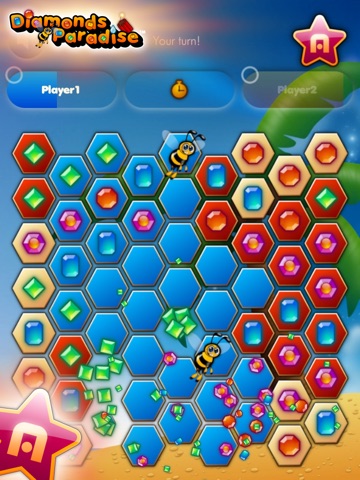 Conquer the gaming area filled with diamonds and become the ruler of Diamonds Paradise. Sweep as long diamond chains as you can and simultaneously make it difficult to your opponent to create a chain. Diamonds Paradise is the relaxing sweep-all-you-can sister of Diamonds Capture. The game strategy is basically the same, capture a large enough area to win, but the gaming area is now in honeycomb formation making it possible to create inventive combos.