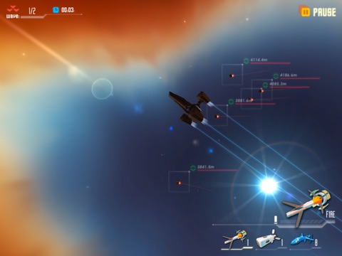 2. The control is very very simple. In the combat, you only need to select a target and press fire button. And everything else is completely automatic. Your space fighter will pursue the target automatically after you selected the target by touch it. While it is locked, push the fire button and you will see a nice explosion show!